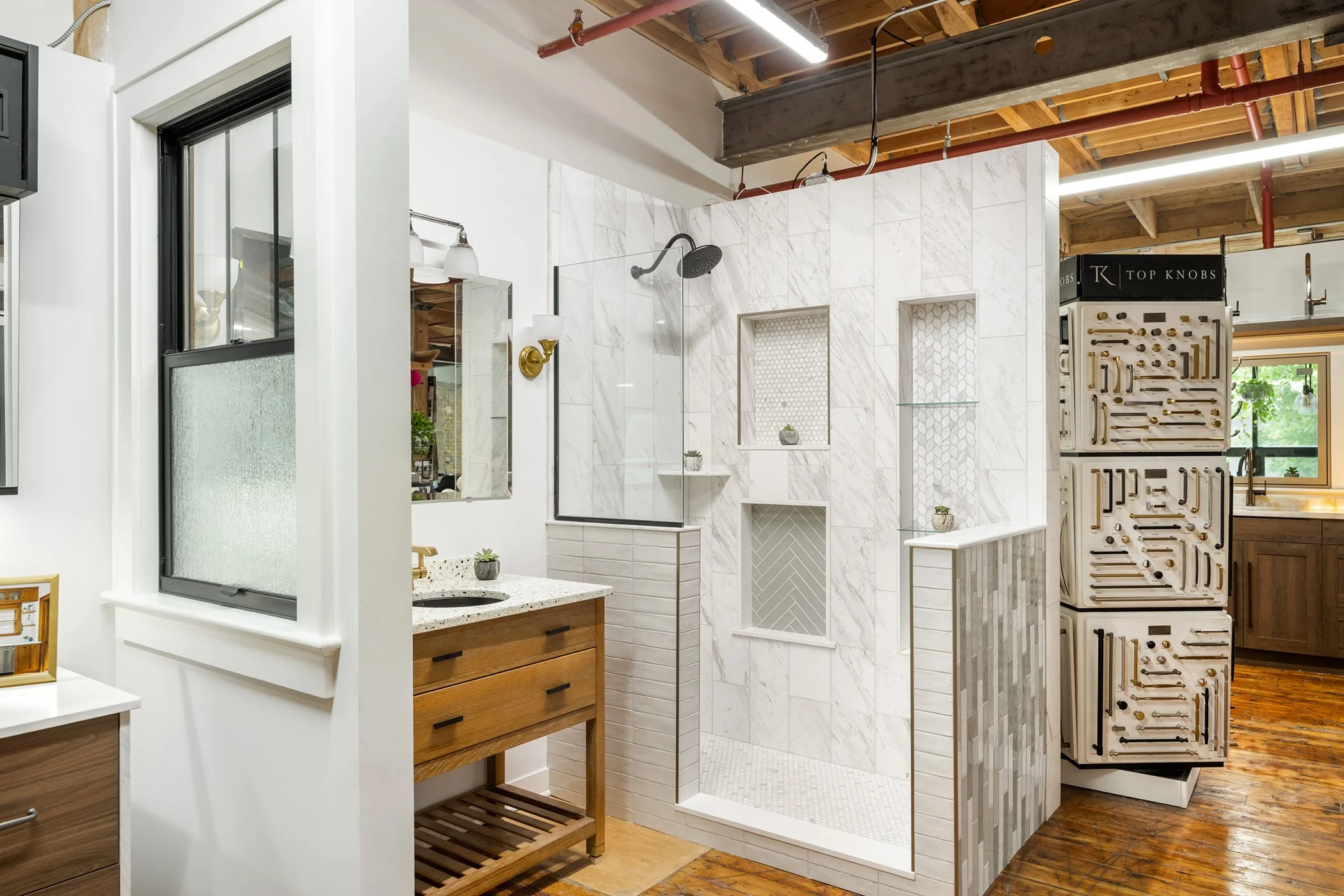 Design decisions can feel overwhelming, but they don’t have to. Our interactive St. Paul showroom is designed to make the process engaging and stress-free. Here, you can see, touch, and compare cabinetry, finishes, flooring, and fixtures all in one place.